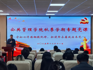 为深入学习贯彻党的二十届四中全会精神,深化廉洁修身教育,扎实推进党风廉政建设向基层延伸,引导青年学子筑牢拒腐防变思想防线,12月11日下午,学院党委书记徐岩面向秋季学期党员发展对象、入党积极分子和各党支部纪检委员讲授“中国共产党百年反腐倡廉史”专题党课。