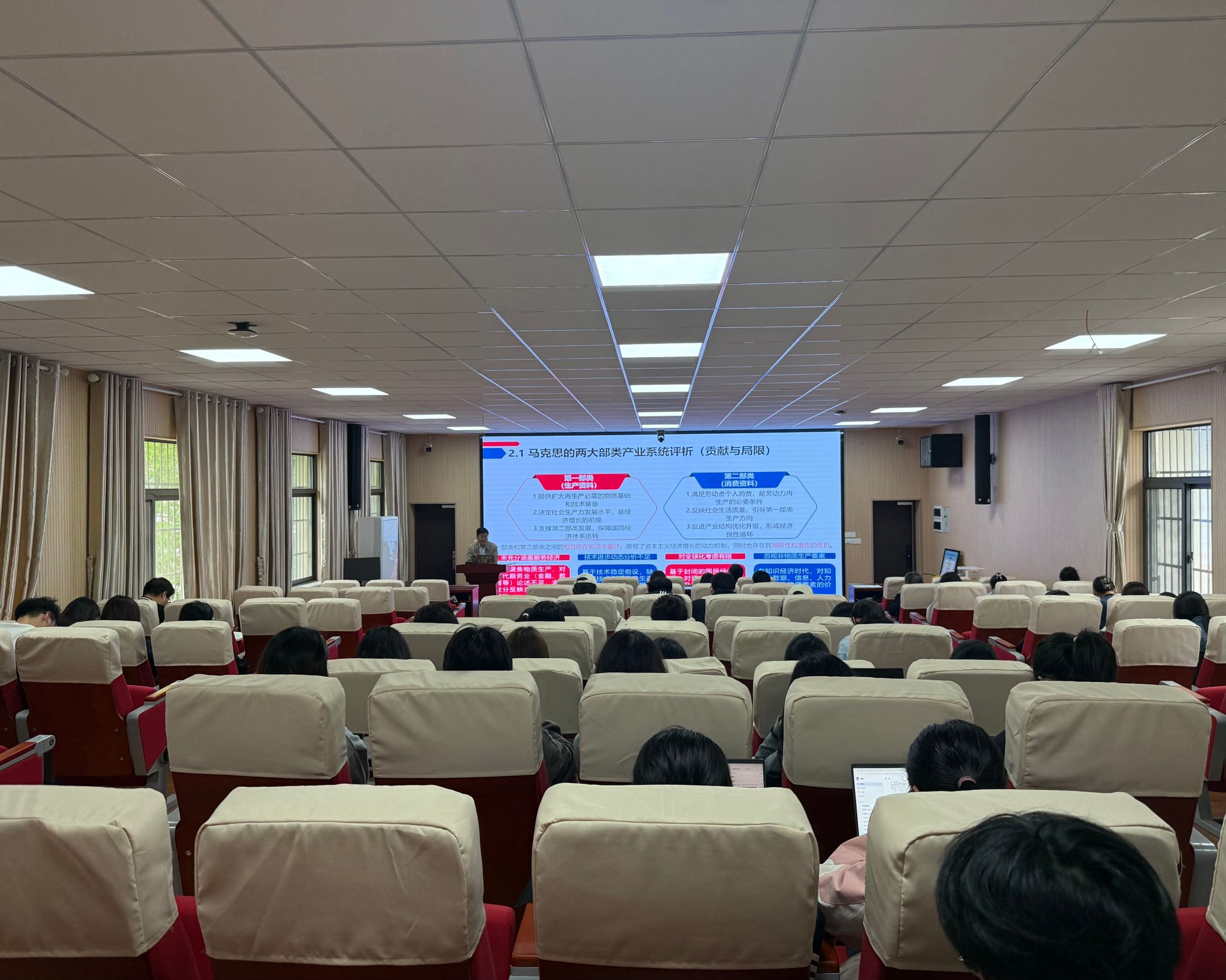 整场报告逻辑严密、案例鲜活,既有理论突破,又紧扣国家战略需求,引发了师生们的强烈共鸣。本次讲座不仅深化了大家对可持续产业体系的理解,也激发了跨学科服务绿色发展的学术热情。