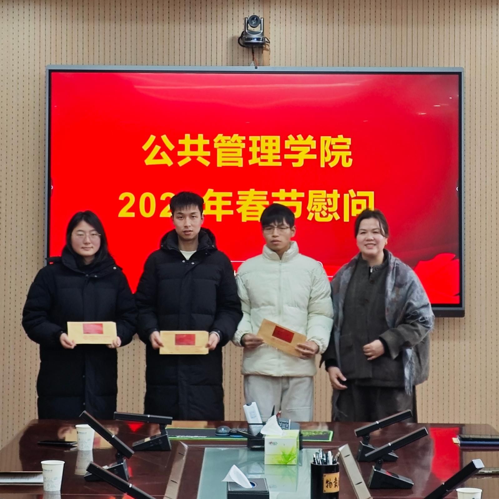 此次春节慰问活动,不仅为师生及退休老教师送去了节日的祝福,更传递了学院的温情与关怀。通过面对面的交流沟通,进一步拉近了学院与师生、老教师之间的距离,凝聚了人心、汇聚了发展合力。未来,公共管理学院将始终坚持以师生为中心的发展理念,持续做实做细教职工和学生服务保障工作,用心用情解决师生急难愁盼问题,不断推动学院各项事业再上新台阶,以优异成绩书写高质量发展的崭新篇章。