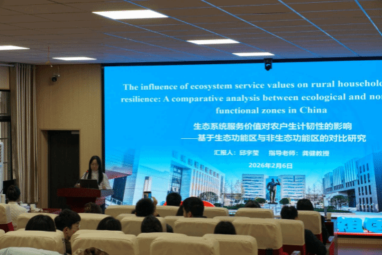 李曼博士系统总结了青海省主体功能区实施成效评估的成果;黄丽萍博士围绕青海省耕地保护考核奖惩基金项目展开汇报;毕宇哲博士聚焦“国土空间用途管制监测评估”的内涵与技术路径进行分享;邱宇莹博士以生态系统服务价值为切入点,揭示了生态系统服务与农户生计韧性的关联机制;硕士生周明洋、赵砚秋、王雅婧、赵康亭分别对“国土空间用途管制”、“手机信令大数据技术”、“乡村可持续发展”、“片区土地价值影响机制”等主题展开交流。